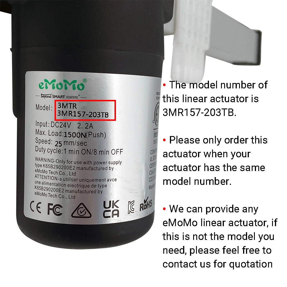 - We can get ANY linear actuator made by eMoMo, if you can’t find the model you need, please send us an email, and we will get back to you with a quotation.